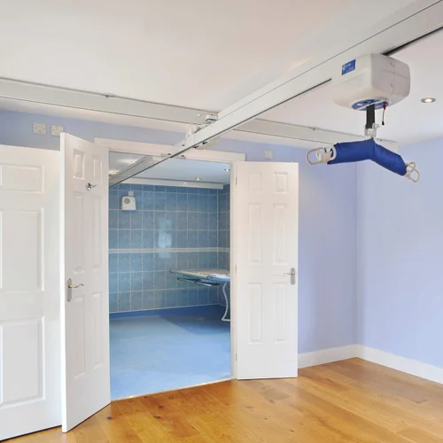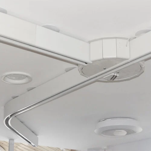 Options include room covering systems (also known as XY systems or H systems) that can connect up to a neighbouring room with Ceiling Hoist gate system, tight curves for small bathrooms and a flexible turntable with 16 exit possibilities.