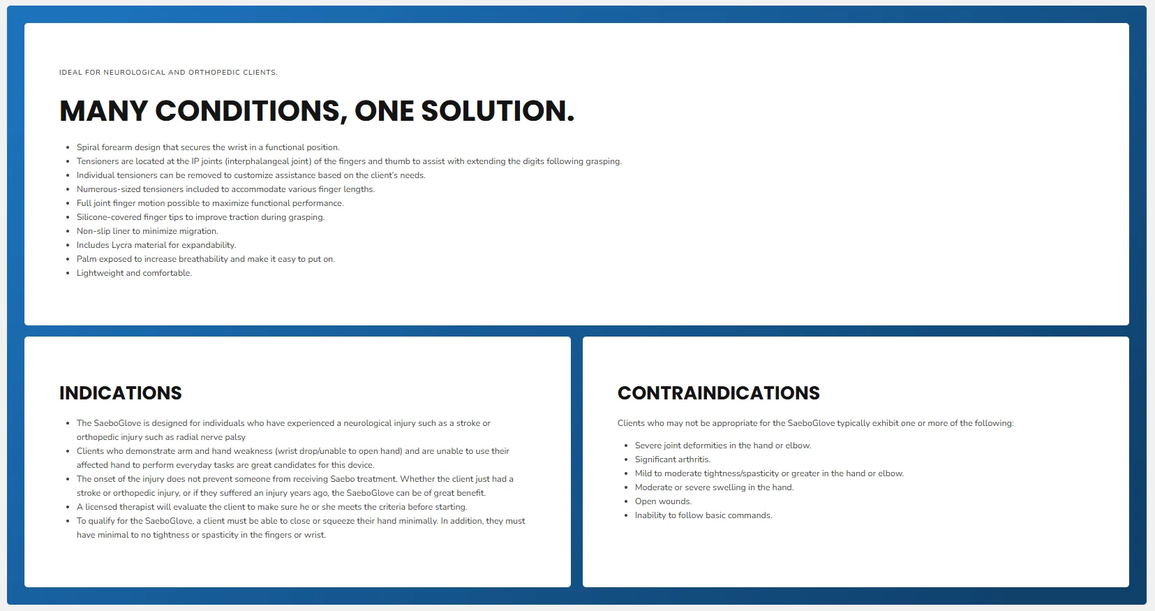 - Active Assistance-as-Needed: The SaeboGlove utilizes dynamic tensioning to provide precise Assistance-as-Needed, ensuring the patient remains the primary driver of every movement. By facilitating high-repetition functional task practice, it optimizes neuroplastic recovery through the patient’s own volitional effort.