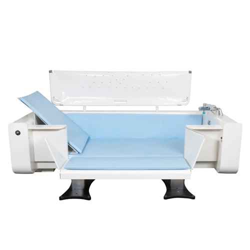 As a result the client preserves their dignity by avoiding being moved wet and unclothed around the room, the carer avoids a transfer operation, reducing back strain and by keeping the client over the bath, the floor remains dry and the client is warmed by the heat of the bath.