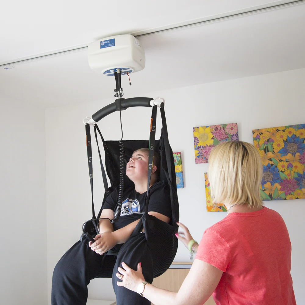The award-winning OT200 Compact Ceiling Hoist is one of the smallest professional-use patient hoists on the market.