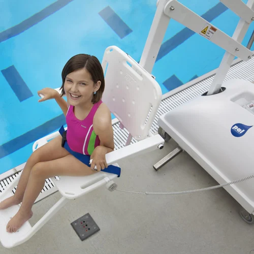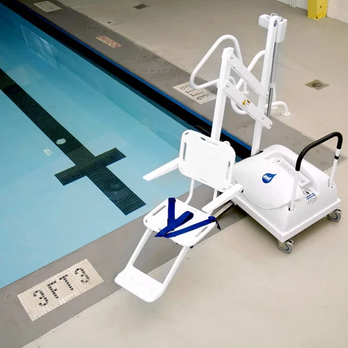 The OpeMed PAL Pool-side Hoist is a completely portable aquatic lift, requiring no mounting to the pool deck. The unique design of the PAL allows it to be adaptable to virtually all swimming pool configurations.